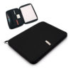 Bloc de notas con tapas de suave tacto acabadas en aluminio y bolígrafo incluido. Ingenioso sistema de cierre a través del bolígrafo integrado en portada y contraportada. De 50 hojas lisas y presentado en caja individual.