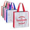 Bolsa en non-woven laminado de acabado mate de 110g/m2. en variada gama de vivos colores. Con asas reforzadas medianas de 55cm. fuelle y acabado cosido. Resistencia hasta 9kg de peso.