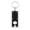 Llavero moneda en divertido diseño bicolor de variados colores. con linterna led y moneda extraíble. Pilas de botón incluidas.