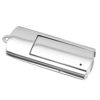Memoria USB de 8GB de capacidad con puntero integrado. De diseño minimalista. acabado metálico brillante y con accesorio para llevar en el llavero. Presentada en estuche individual metálico con ventana y suave espuma troquelada.