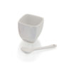 Set gourmet con 3 cucharas de cerámica en color blanco. Con bandeja en madera de bambú troquelada. Presentado en caja individual.